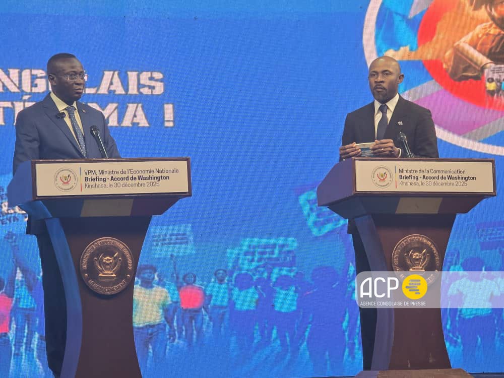 Lors d’un briefing de presse conjoint tenu mardi 30 décembre 2025 soir à Kinshasa, le vice-Premier ministre congolais en charge de l’Économie nationale, Daniel Mukoko, a détaillé les mécanismes de gestion et de suivi de l’accord de Washington, un pacte bilatéral entre la République démocratique du Congo (RDC) et les États-Unis. Accompagné du ministre de la Communication et Médias, Patrick Muyaya, il a souligné l’importance de cette structure pour assurer la transparence et l’efficacité de l’accord, dont les enjeux économiques et stratégiques pourraient redessiner les relations entre les deux pays.