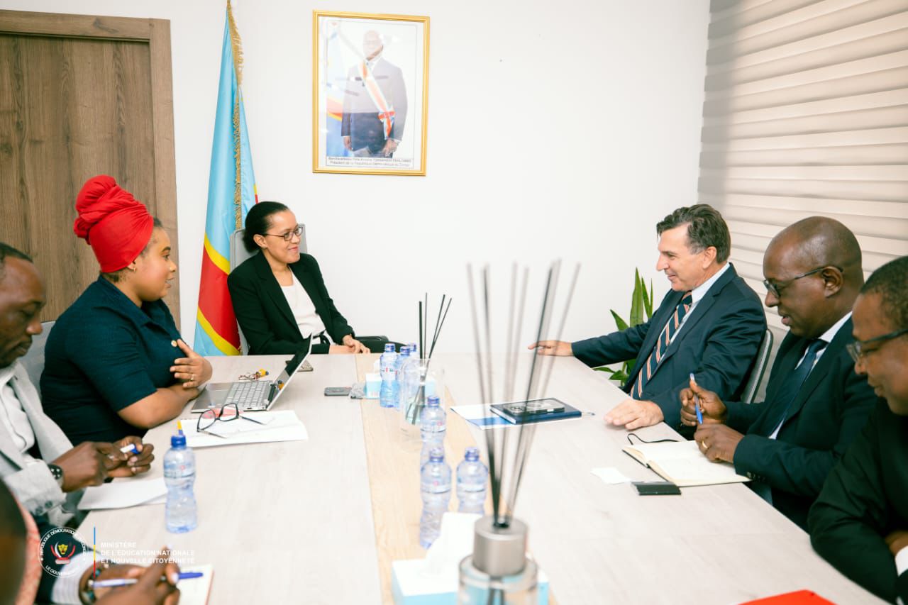 La Ministre d’État, Ministre de l’Éducation nationale et Nouvelle Citoyenneté, Raïssa Malu, a reçu ce mercredi 25 février 2026 en son cabinet de travail M. David Stevenson, nouveau Représentant pays du Programme Alimentaire Mondial (PAM) en République Démocratique du Congo. Cette rencontre de prise de contact a permis d’évaluer les axes de collaboration entre le ministère et l’agence onusienne, avec un focus particulier sur la question cruciale de l’alimentation scolaire.