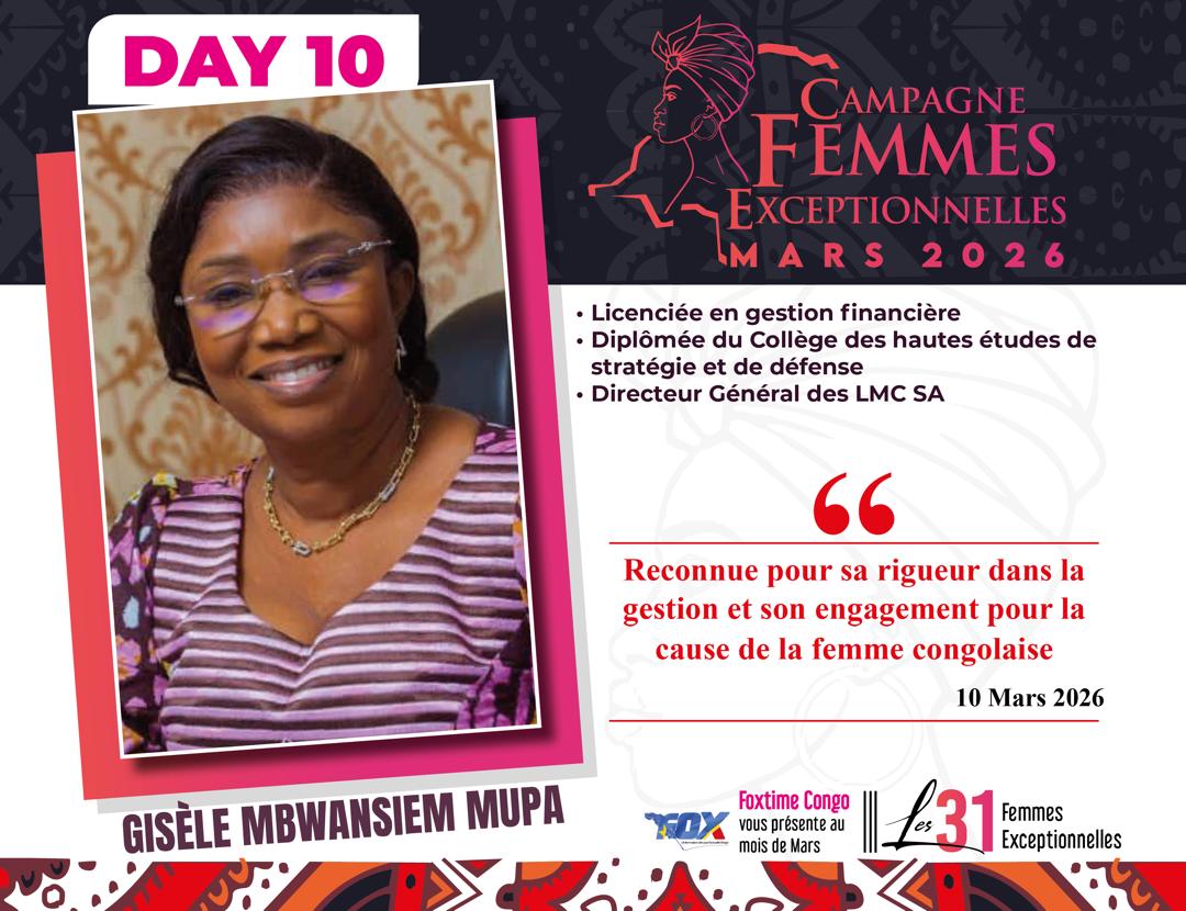 Gisèle Mbwansiem Mbiung Mupa est une figure de proue de la sphère publique congolaise, elle incarne un leadership transformationnel au sein de l’appareil étatique de la République Démocratique du Congo, particulièrement à la tête des Lignes Maritimes Congolaises (LMC SA) où elle occupe les fonctions de Directrice Générale par intérim depuis plus de trois mois démontrant par son action les capacités immenses d’une femme déterminée à bâtir une société maritime publique résiliante et forte .