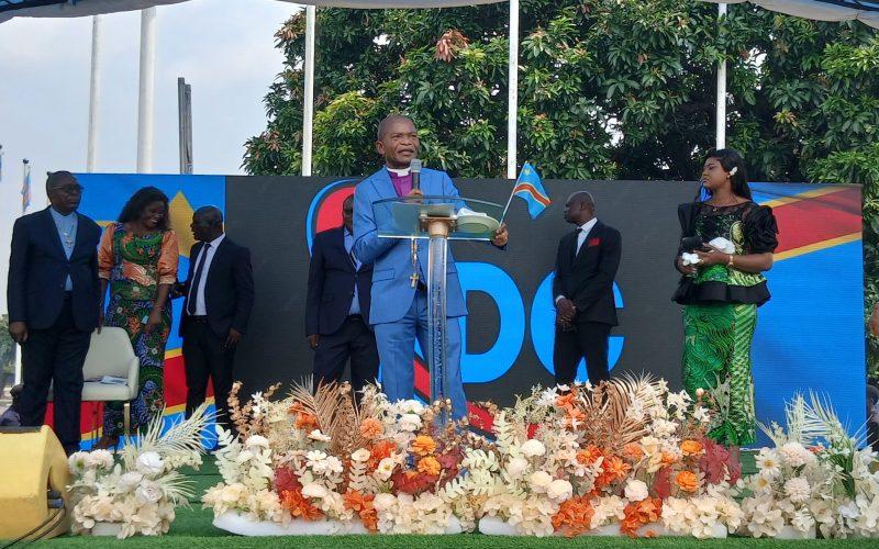 « J’ai déjà promis, mais nous nous devons dire à l’éternel, nous ne voulons pas que ces promesses la traînent, nous voulons que ça s’accélère, que l’éternel Dieu, les accords signés, que ça s’accélère, les résolutions 2773, que ça s’accélère, les différents éléments qui vont en faveur de la République démocratique du Congo, que ça s’accélère et que l’éternel Dieu, qui a reçu la prière du premier Congolais, qui a déclaré qu’éternel vient trôner la République démocratique du Congo, oui, que l’éternel Dieu se manifeste dans l’accélération de toutes les promesses de Dieu sur la République démocratique du Congo. Et je crois, si nous prions, si tu pries, si moi je prie d’un cœur sincère, effectivement, la chose nouvelle étape est sur le point de se manifester. Pour clôturer ce message, je m’en vais nous sensibiliser tous.Qu’il y a un principe qui dit, nul ne peut se sentir mieux que chez soi. Et donc chez nous, c’est la République démocratique du Congo. Et nous comme Église, à certains moments, nous sommes appelés à mettre de côté nos différences, car c’est une question nationale, que nous puissions voir d’abord, qui gagnera la République. » A déclaré l’archevêque Ejiba yamapia président de l’église de réveil du Congo
