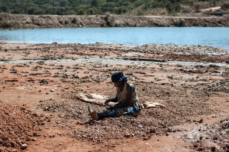 A woman separates rocks from cobalt near a mine between Lubumbashi and Kolwezi on May 31, 2015. AFP PHOTO/FEDERICO SCOPPA / AFP PHOTO / FEDERICO SCOPPA