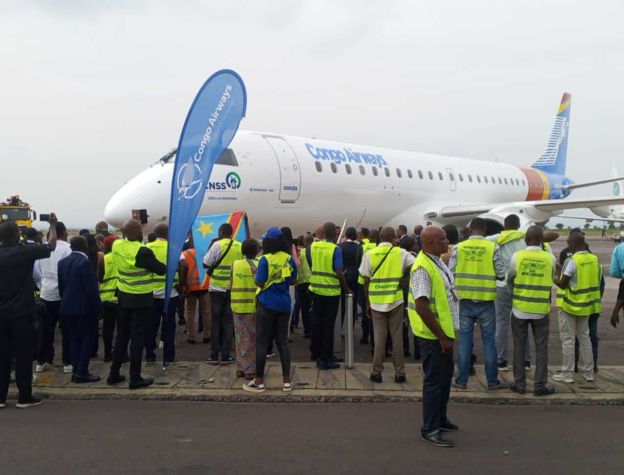 La compagnie aérienne nationale congolaise, Congo Airways, a officiellement réceptionné un nouvel avion Embraer E-190, capable d’accueillir jusqu’à 90 passagers, lors d’une cérémonie tenue mercredi 24 décembre 2025 à l’aéroport international de N’djili. Cette acquisition s’inscrit dans le cadre des efforts de modernisation de la flotte aérienne publique, sous la supervision du président du Conseil d’administration, Jean-Bertrand Ewanga.