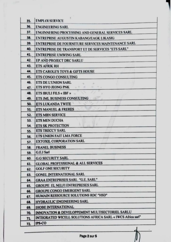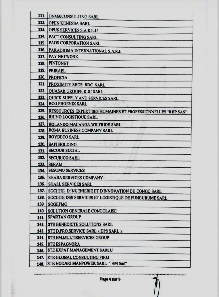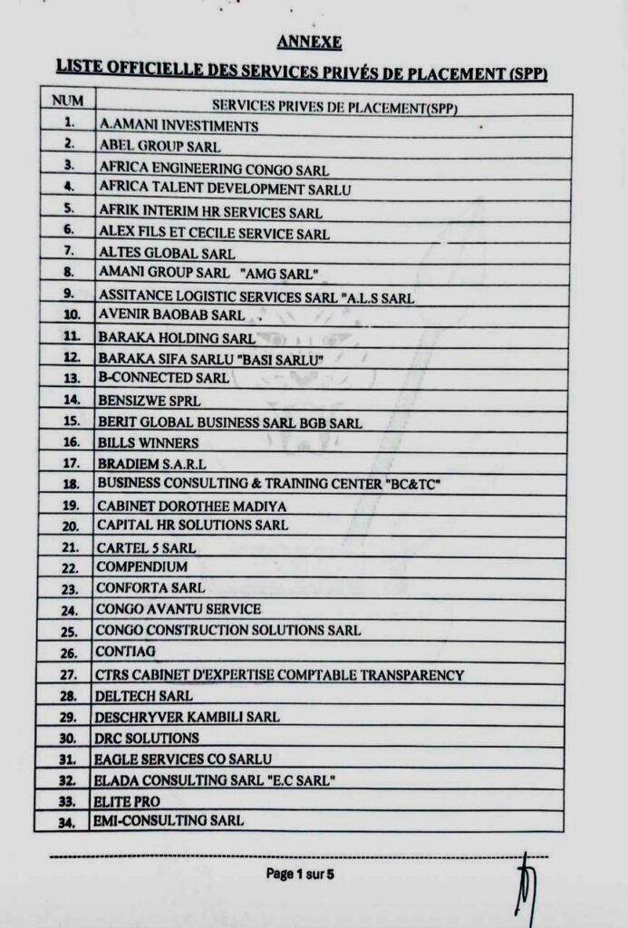 RDC : Voici la liste des 175 services privés de placement en ordre sur les 625 contrôles par le ministère de l’emploi
