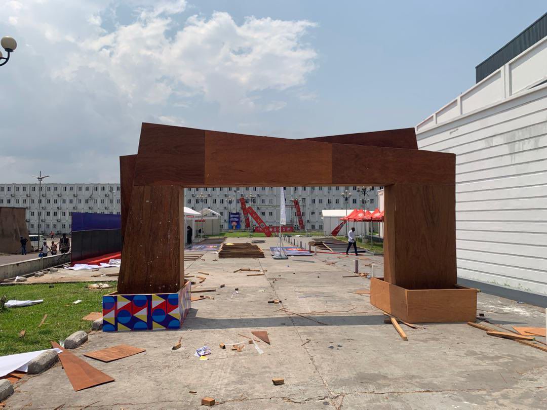 Village des opportunités au Stade Tata Raphael : plusieurs stands d’exposition en cours de montage