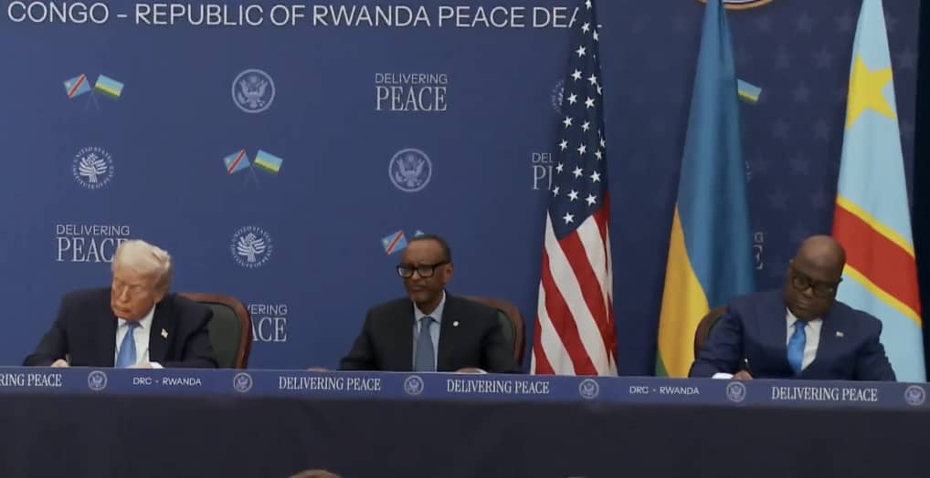 La cérémonie de signature de l’accord de paix entre la République Démocratique du Congo et le Rwanda, a finalement eu lieu ce jeudi 04 décembre 2025, sous la médiation des États-Unis d’Amérique dans un climat de prudence et de méfiance en présence de plusieurs personnalités, notamment du président de l’Angola et président de l’Union Africaine Joâo LOURENÇO et plusieurs autres chefs d’État africains.