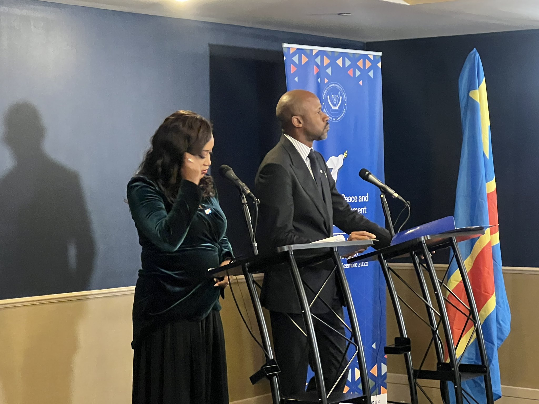 Le ministre de la communication Patrick Muyaya et la porte-parole du Président de la République, Tina Salama ont fait le point en ma marge du sommet de l’entérinement de l’accord de paix entre la République démocratique du Congo et le Rwanda pour le retour intégral de la paix dans la partie orientale de la RDC.